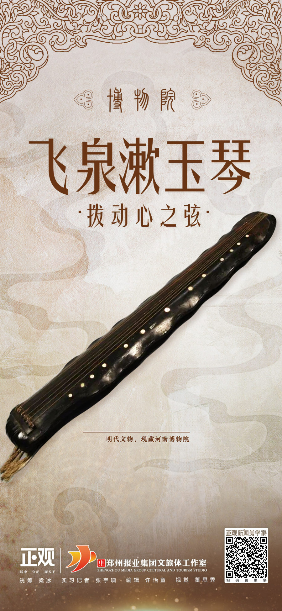 根据现有定名习惯,现已公开资料的近六百张存世历代古琴实物中,蕉叶式古琴只有20张左右,其中明代有16张、清代4张。河南博物院收藏的这张蕉叶式“飞泉漱玉”琴,形制比较独特且保存完好,是研究传统蕉叶式古琴的珍贵实物资料。(正观新闻实习记者 张宇啸)