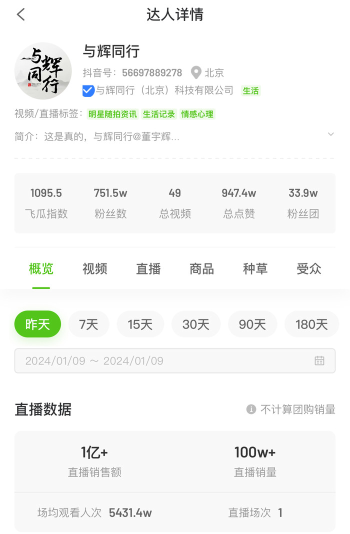 与辉同行账号昨日带货超1亿元,点赞量超12亿次,董宇辉的专属直播间首次开播,就登上了抖音带货榜总榜第一名。上一次拥有这样的高关注度和“秒空”带货能力的,还是李佳琦回归。