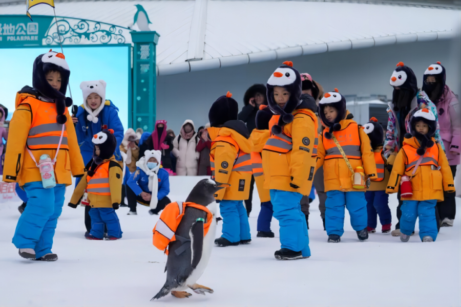 1月6日,11名来自广西南宁的小朋友来到黑龙江哈尔滨极地公园参观游览 图片源自中国新闻网