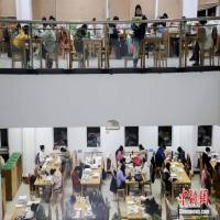 资料图:学生们在图书馆看书复习。中新社记者 瞿宏伦 摄