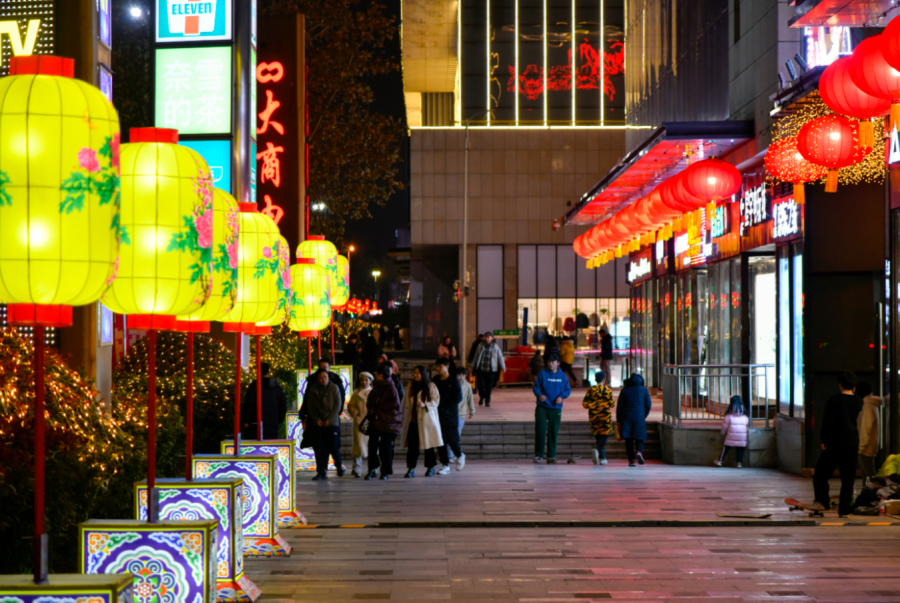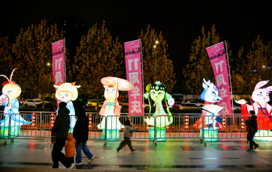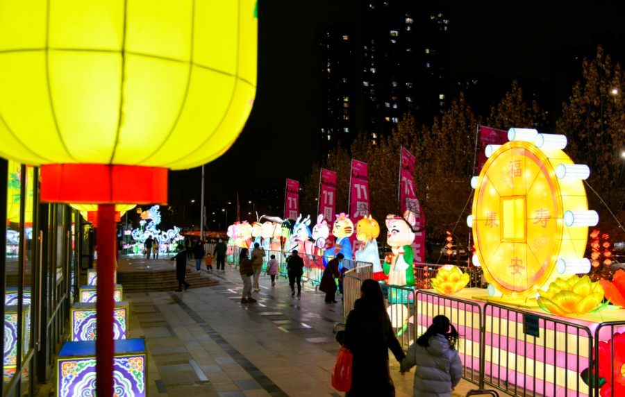 桐柏路棉纺路王府井广场上新年花灯盛景。