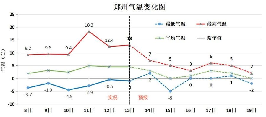 图1 2024年1月8日至19日郑州气温变化图(单位:℃)