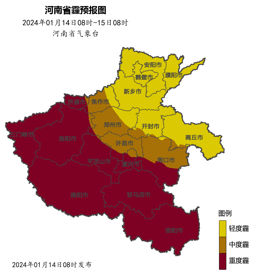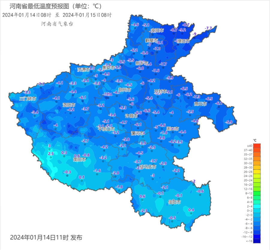 预报来源:河南省气象台2024年1月14日12时预报