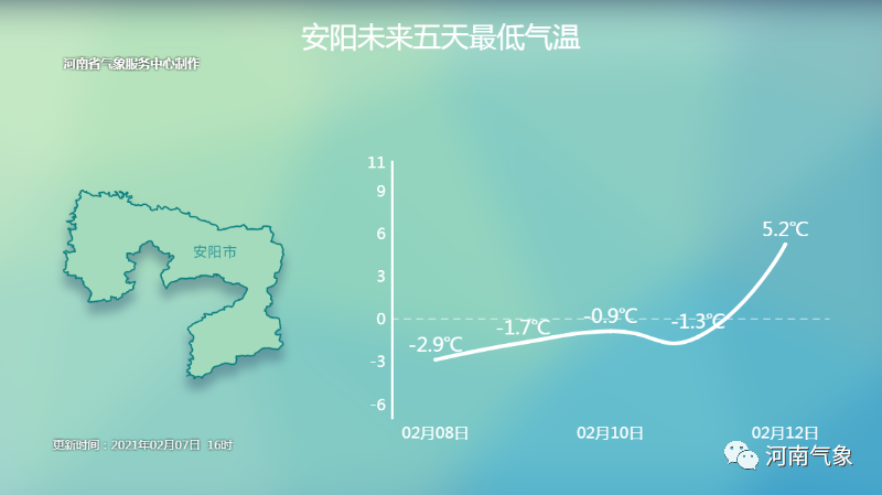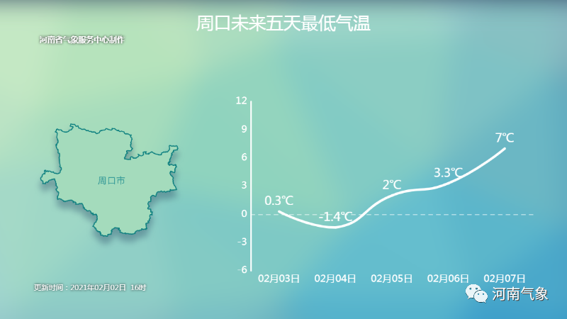 最低温度:西部山区、北部零下3度到零下1度;南部3到5度;其它地区0度左右。