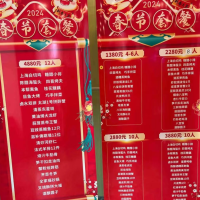 据悉,苔圣园今年推出了多个春节套餐,包括1380元的4-6人餐、2280元的8人餐、2880元的10人餐、3880元的10人餐以及4880元的12人餐等。