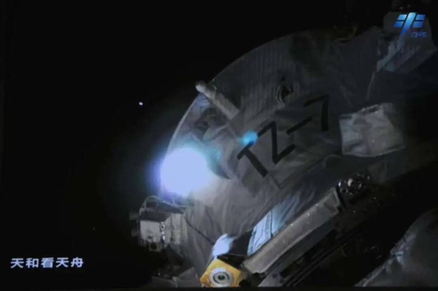 据中国载人航天工程办公室消息,北京时间2024年1月17日22时27分,搭载天舟七号货运飞船的长征七号遥八运载火箭,在我国文昌航天发射场点火发射,约10分钟后,天舟七号货运飞船与火箭成功分离并进入预定轨道,之后飞船太阳能帆板顺利展开,发射取得圆满成功。