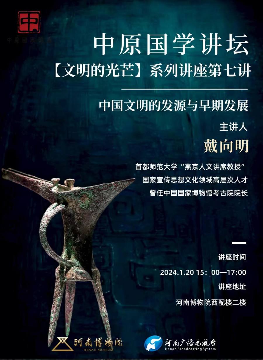 荐语:中国史前文明的发展可以分为哪些阶段?目前有哪些关于“文明”定义的不同观点?有哪些考古材料可以说明社会分化和集权政治的出现?1月20日15:00,由河南省文化和旅游厅、河南博物院举办的2024年中原国学讲坛“黄河文脉•民族根魂”系列讲座之“行走河南•读懂中国”第3讲(总第374讲),特邀戴向明教授做客河南博物院,为您全方位解读“中国文明的发源与早期发展”。