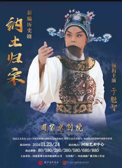 荐语:由河南大学河南戏剧艺术学院院长、著名京剧表演艺术家于魁智,河南大学河南戏剧艺术学院艺术总监、著名京剧表演艺术家李胜素领衔主演的国家京剧院新编历史剧《纳土归宋》,将于2024年1月23日、24日登陆河南艺术中心。新编历史剧《纳土归宋》讲述了五代十国末期,吴越王钱俶顺应历史、尊奉正朔、自献封疆、纳土归宋的历史故事,表现了维护国家统一、秉承民本思想、追寻和平安定、铸牢中华民族共同体意识的精神主题。