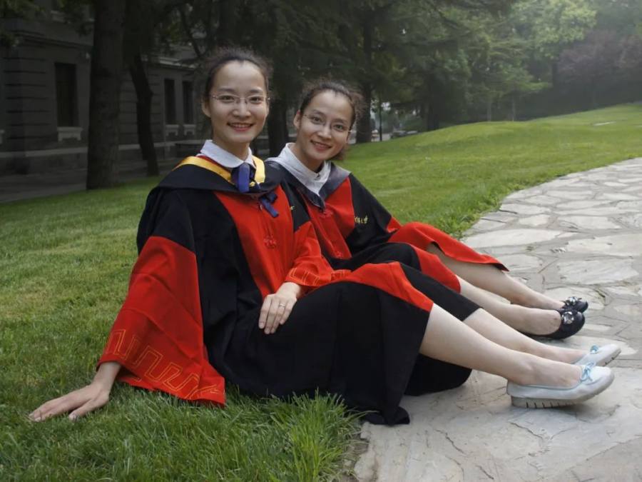 马冬晗(左)、马冬昕(右)在本科毕业典礼