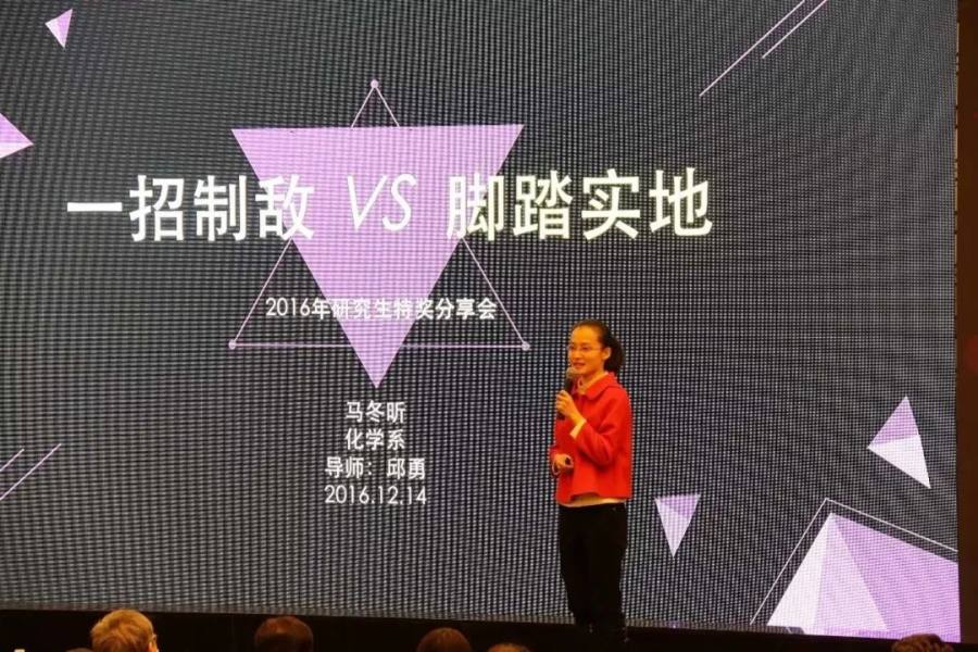 五年后 ,在化学系直博的妹妹马冬昕站到了清华研究生特等奖学金的答辩会上,成为了“双料特奖”。