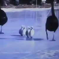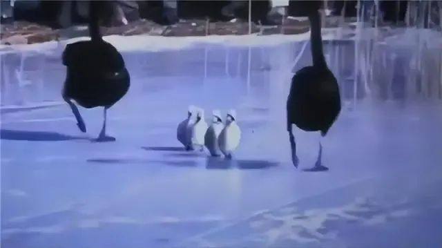 被迫走冰的大小天鹅。图片来源:BRTV北京新闻视频截图