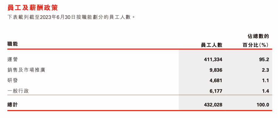 据京东物流2023年半年报显示,截至2023年上半年,参与仓储管理、分拣、拣配、打包、运输、配送及客服等运营员工的员工薪酬福利开支为260亿元,同比增长26.1%。运营人员人数超41万人,占比超95%,其中,京东物流拥有超过30万名自有配送人员。按上述数据粗略估算,2023年上半年京东物流运营员工个人的薪酬福利平均超过6.34万元。