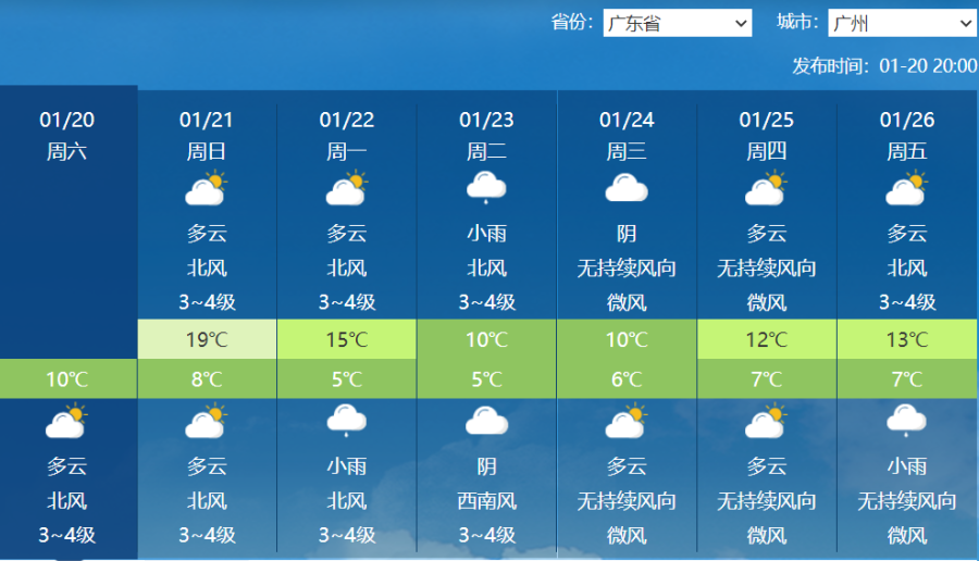 南方的江西南部、浙江南部、福建中西部、贵州南部、广西、广东等地部分地区由于前期气温偏高显著,降幅也将十分惊人。像广州,昨天最高气温还有26.7℃,23日只有10℃。