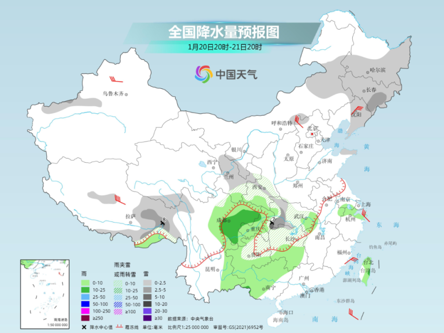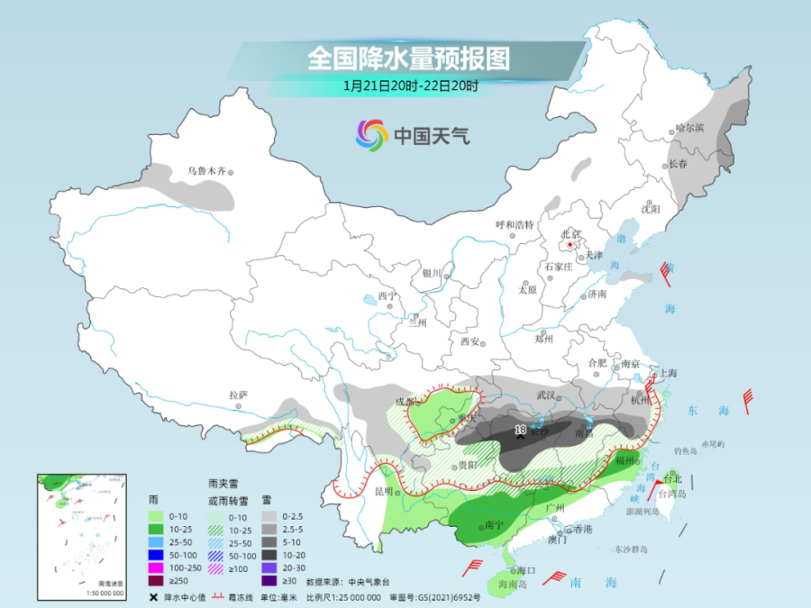 大寒节气遇寒潮,今年首场寒潮天气已经来袭!这次过程影响范围广、局地累计降温幅度大、冰冻线直抵华南,同时南方还将经历今冬以来范围最大、最强的降雪过程。接下来就给大家详细说说这次寒潮的特点↓↓