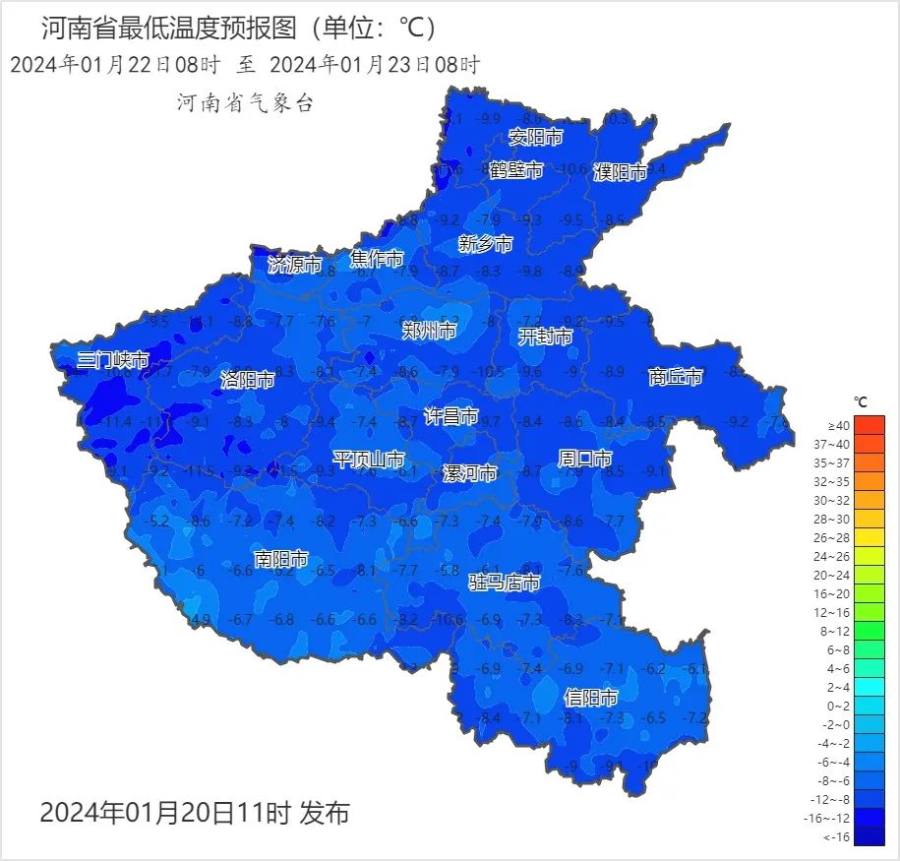22-23日江淮、江南一带最高气温普遍不足5℃,江淮北部和东部、贵州、湖南等地部分地区还有可能跌至冰点以下,多地最高气温甚至达到同期少见的偏低水平。