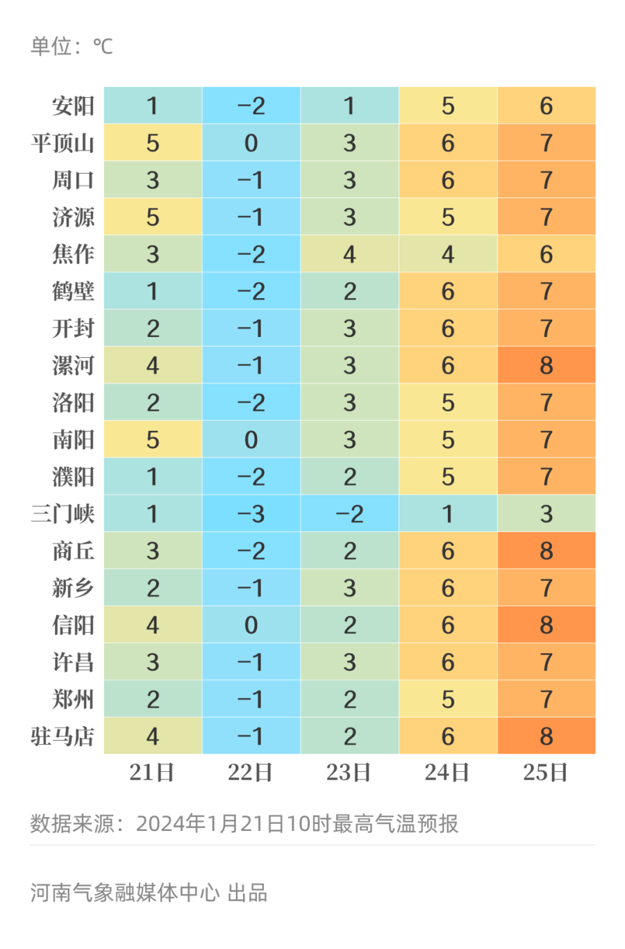 22到24日,全省气温较低,最低气温西部、西北部零下12度到零下10度,局地零下14度左右;南部零下6度到零下4度;其他县市零下9度到零下7度。