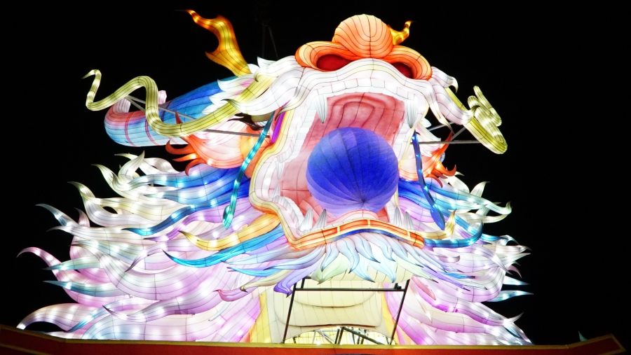 300多位来自四川的能工巧匠,将国家级非物质文化遗产自贡彩灯技术与中原文化融于一体,精心设计打造出10大主题彩灯和60余组巨型主题灯组。