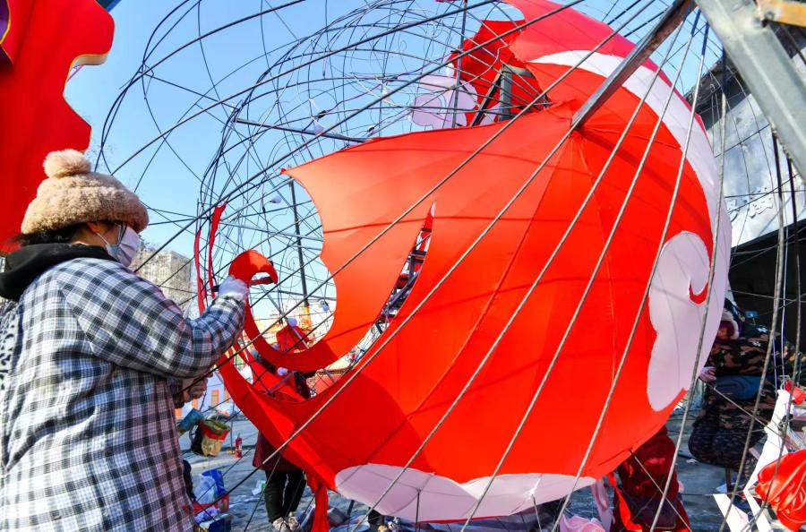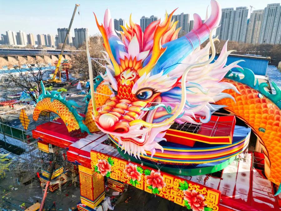 瑞雪初霁,新春将至。“川灯耀世界 中原奇妙游——郑州银行龙年迎春灯会”开园在即。1月21日晚的点睛仪式上,全场灯会尺寸最大的龙头被点上眼睛,宣告门灯“五龙呈祥”基本成型。