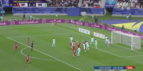 第65分钟,阿菲夫开出角球,禁区外的海多斯世界波破门。画面显示,国足在大禁区外空无一人。