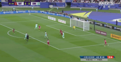 下半场比赛,卡塔尔队直接换上了第三门将哈桑,国足则换上了谢鹏飞加强进攻。但国足却在一次定位球防守中出现了失误: