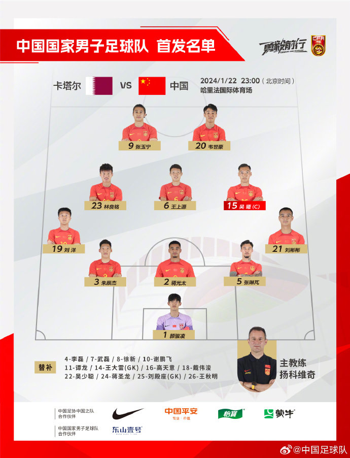本场比赛,主教练扬科维奇对首发阵容进行了一定的调整——韦世豪和林良铭首发,武磊替补。