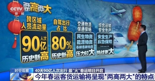 根据交通运输部此前发布的数据,今年春运期间全国跨区域人员流动量预计将达到90亿人次,创历史新高。