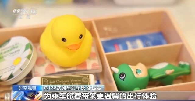 G138次列车列车长 张媛媛:我们丰富了列车百宝箱,增加了小玩具、护手霜、一次性卡片雨衣等物品,为乘车旅客带来更温馨的出行体验。