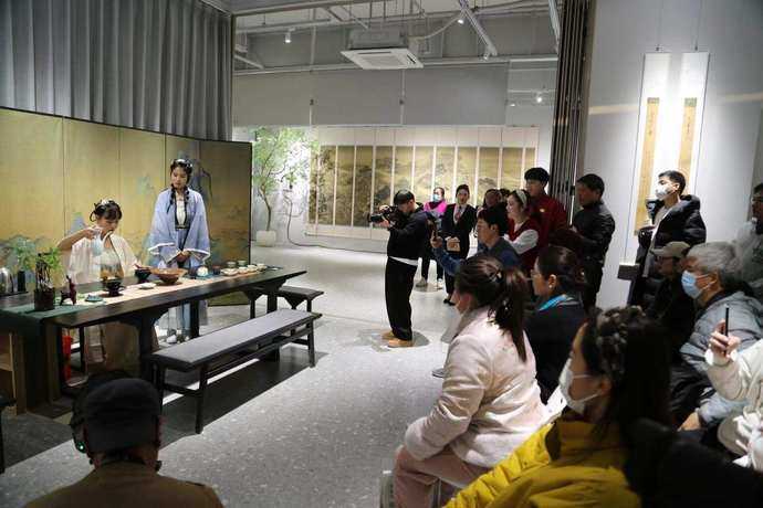 发布会前,知式艺术馆内,宋风雅韵艺术展吸引了不少体验嘉宾,大家兴致盎然地观摩宋代四雅之点茶技艺。馆内布景,一树一画一桌一屏风,无一不展露着宋人浪漫、雅致的极简生活。