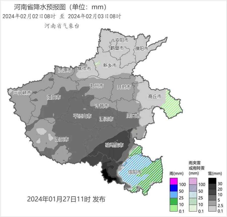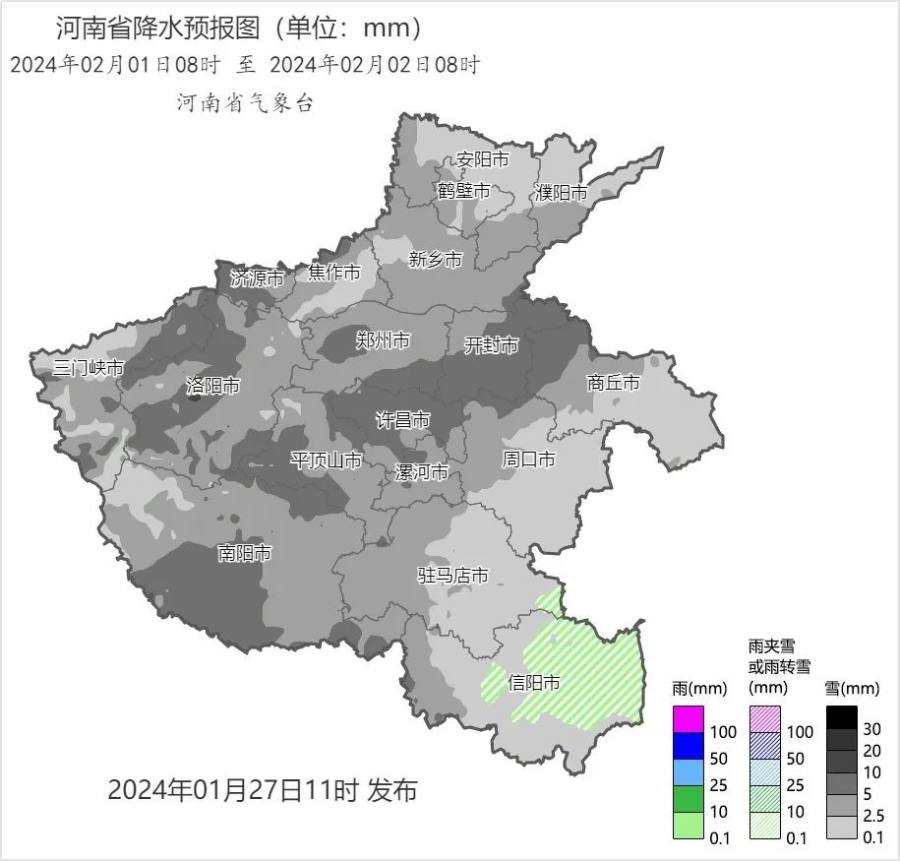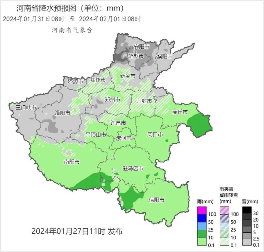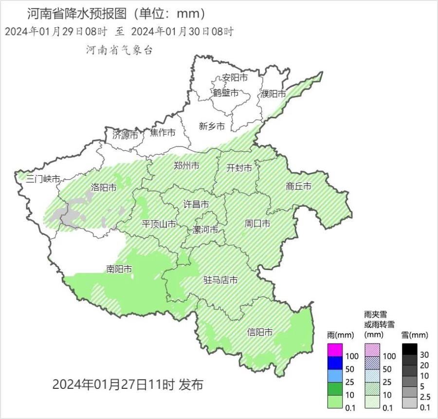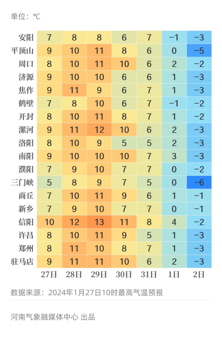 预报来源:河南省气象台2024年1月27日12时预报