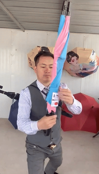 其实,“魔法”背后是雷鹏琳和伞厂员工的不断钻研。以销量最好的“镭射反光伞”为例,最初,有网友在评论区留言“想要一把会发光的伞,走夜路我怕被车撞”,雷鹏琳看到后尝试用反光材料做出了“镭射反光伞”,在黑暗里会“发光”,十分显眼。他拍下视频并做了预售链接,“没想到效果特别好,当天就卖了一万把伞,后面半个月时间总共卖了七万把。”