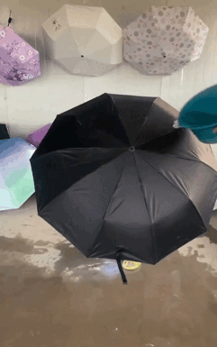 雷鹏琳使用“会下雨的伞”。图源:视频截图