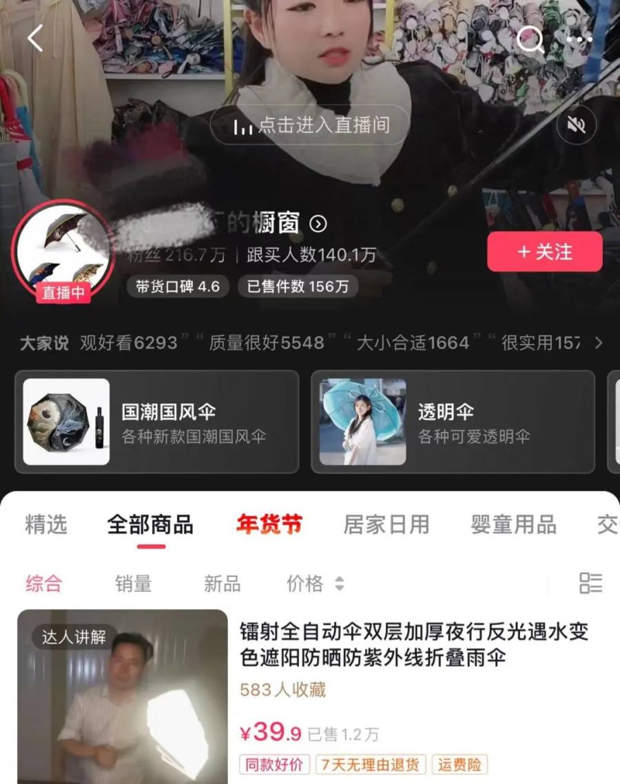 起初,在介绍自家产品时,雷鹏琳生怕说得少,从伞的类型、打开方式,到骨架、面料都一一介绍。视频很长,数据没有起色,直播间里仅有寥寥几人,一天只能卖出十来把伞。
