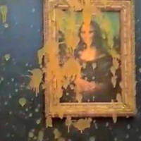 由意大利文艺复兴时期画家列奥纳多·达·芬奇创作的《蒙娜丽莎》,有着“世界上最神秘的微笑”之称。近年来却屡屡成为抗议者为宣泄自身不满情绪的“袭击”目标。2022年5月29日,《蒙娜丽莎》就曾被一名乔装成老年女性的男子用随身携带的奶油涂抹,所幸画作被放置在玻璃保护罩后,未受损坏。