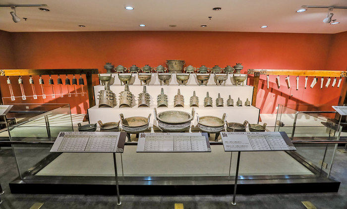 章丘博物馆整体建筑为近不规则三角形,现阶段陈列展览在一层。序厅迎面是一幅大型汉白玉浮雕墙,展示了章丘深厚的历史文化底蕴;第一展厅为“章丘寻古——章丘历史文物展”,集中展示章丘古文化序列以及章丘历年来的考古发掘成果;第二展厅为“惊世汉王陵——洛庄汉墓文物展”,展示洛庄汉墓出土乐器、青铜器、车马器等精品文物;第三展厅“车马威仪——危山汉墓文物展”,展示圣井危山出土陶兵马俑、车及陶窑遗址等勘探、发掘的所有资料和成果。