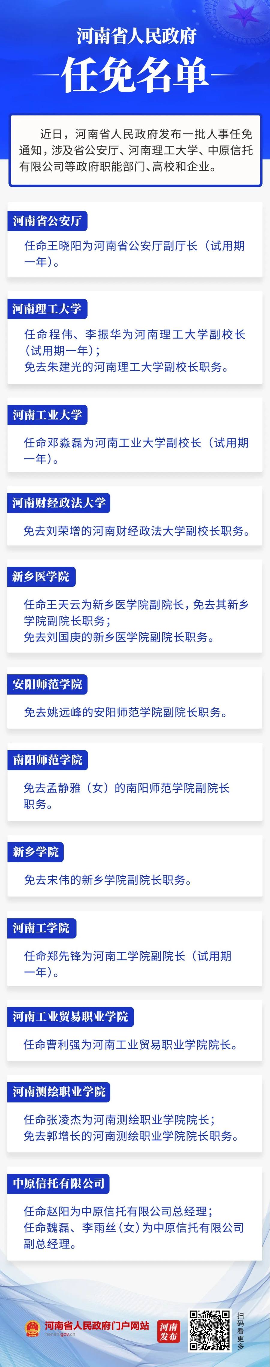 河南省政府新任免一批干部