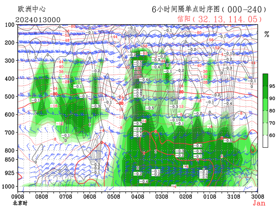 信阳未来240小时综合廓线图预报