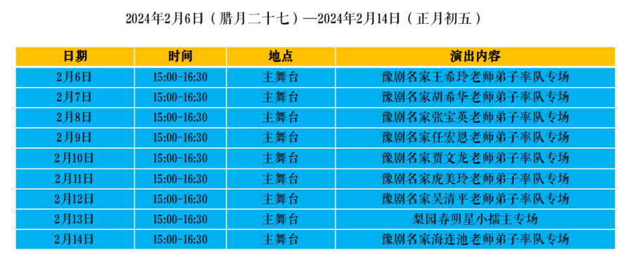 时间:2月6日(腊月二十七)至2月14日(正月初五),每天15:00-16:30