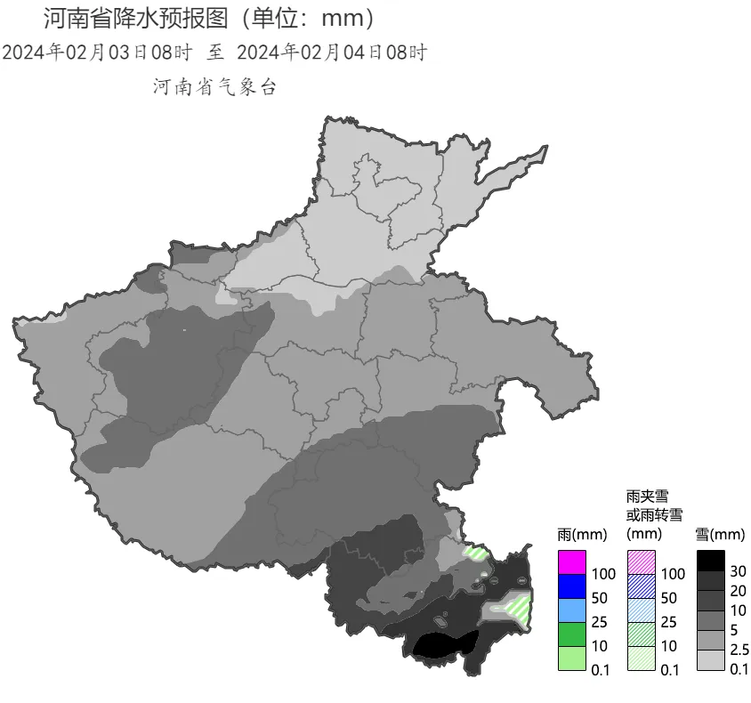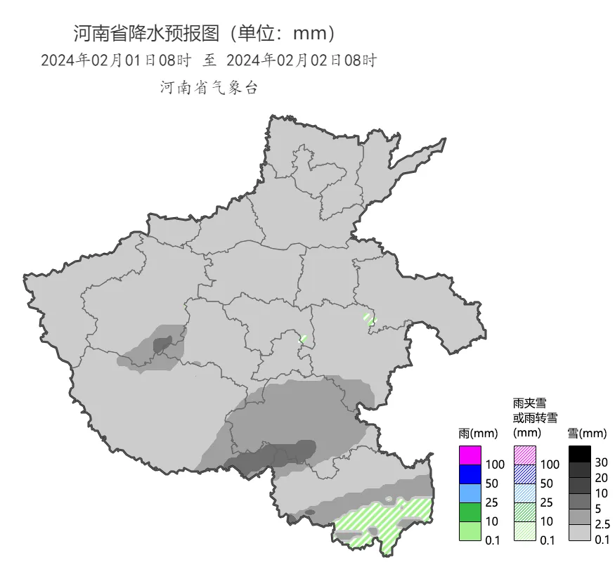 1日夜里,信阳、驻马店、南阳南部、周口南部有雨夹雪或小到中雪,部分时段伴有冻雨;其他县市有小雪或零星小雪,其中西部山区局部中到大雪。