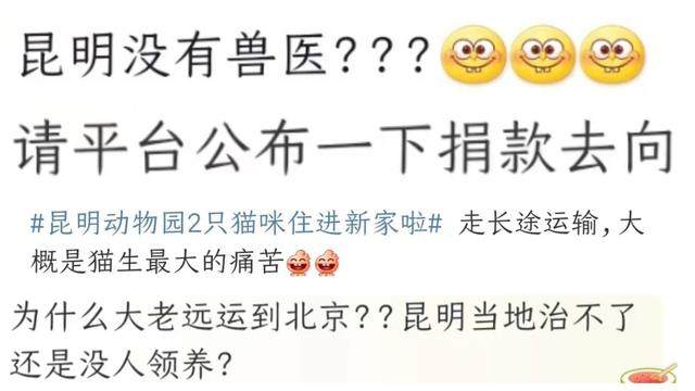 “为何要把两只猫从云南运到北京?”“昆明当地治不了还是没人领养?”“对于这两只长期遭受欺负的猫来说,长途飞行是否有应激风险?”一位爱猫人士表示,长途运输对猫来说很痛苦。在直播间和短视频平台,不少网友对中国小动物保护协会的做法提出疑问。