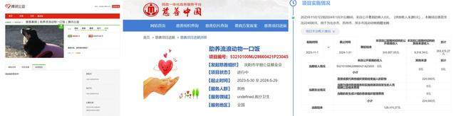 这位华易基金会工作人员还向记者介绍,2023年5月,华易基金会和中国小动物保护协会首次合作,筹款项目“助养流浪动物一口饭”在腾讯公益上线,目前已经结束。所筹款项、招标信息、采购支出、支出明细等均在筹款平台和慈善中国平台进行公示。然而,记者在查阅相关网站后发现,在筹款平台,“助养流浪动物一口饭”项目显示“募款结束,请查看结项报告!”而“结项报告”一栏则显示“项目报告等待中!”,在“项目进展”一栏并未出现工作人员提到的“招标信息”“采购支出”“支出明细”等信息,仅有“捐赠物资接收证明”;而在慈善中国平台,“助养流浪动物一口饭”项目则显示“进行中”,公示内容仅有“当前结余”“当期收入”“当期支出”等信息。