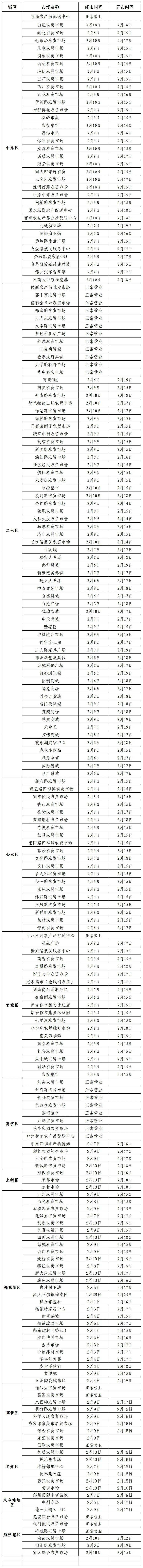 2024年春节期间郑州各区市场闭市、开市时间详情→