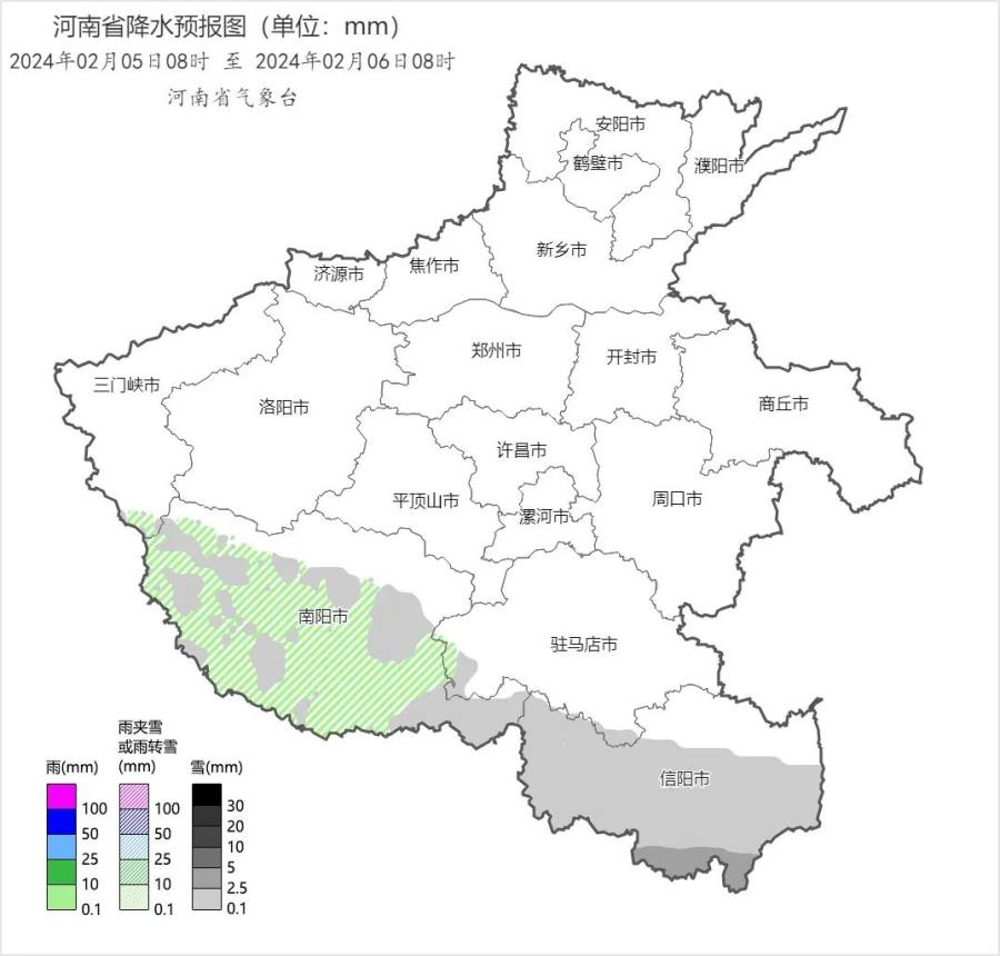2月4日白天全省还有雨雪,中东部雨雪量级不小,有中到大雪、局部暴雪。2月5日到7日就只有西部、南部局部还有些小雨雪,年前剩余时间河南将会进入雨雪稀少时段。