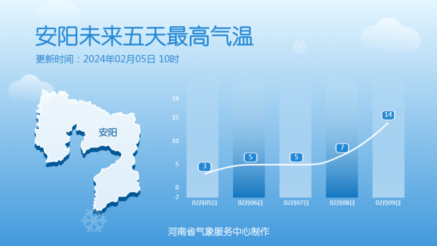 5到7日,西北部、东部最低气温零下10度到零下8度,局部零下14度到零下12度;其他县市零下8度到零下5度。