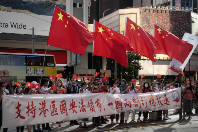 2020年6月30日,香港市民在铜锣湾街头支持实施香港国安法。(图源:新华社)
