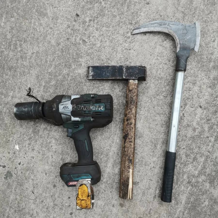 钻机、锯、斧头、焊枪、锄头、镰刀等工具农具。