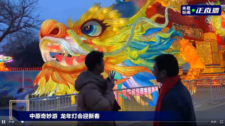 此前,央视新闻还对这场郑州龙年迎春灯会进行了40多分钟的直播,对园区的巨型灯组、特色非遗等进行了详细的介绍和解读。