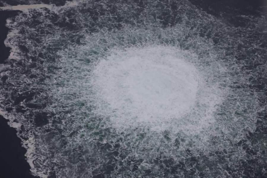 这张瑞典海岸警卫队2022年9月28日发布的航拍照片显示的是,“北溪-1”天然气管道仍在泄漏大量气体。新华社发(瑞典海岸警卫队供图)