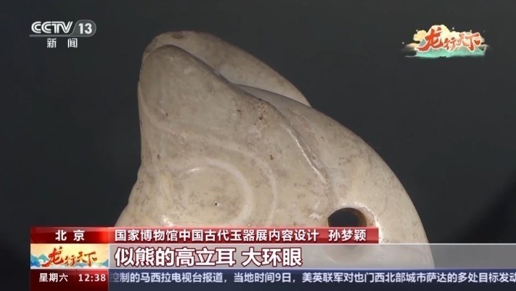 国家博物馆中国古代玉器展内容设计 孙梦颖:这件玦形龙,我们可以看到它的似熊的高立耳大环眼,似猪的前突外颚,还有似蛇的蜷体环尾形,也有人说它是代表着人类胚胎或者是蜕变昆虫的幼虫,可能具有蜕变或者羽化再生的含义。