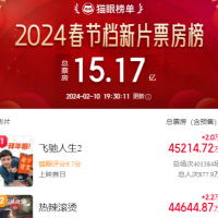 截至2024年2月10日19时12分,2024年春节档新片总票房突破15亿元(含预售)。《飞驰人生2》《热辣滚烫》《熊出没·逆转时空》暂列春节档新片票房榜前三。