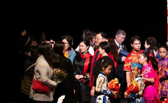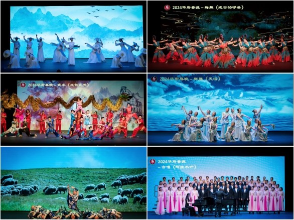 晚会分“韵动的新春”、“国风迎春来”、“春色满庭芳”三段篇章,动情诉说着一个充满生机、希望、力量的龙年之春。歌舞表演展示了中国江南水乡的温婉柔情、北方大地的奔放豪迈、大漠敦煌的神秘浪漫,无不浸润着对故乡的深深眷恋。节目既有二胡、西方打击乐的“混搭”,又有满满中国风的《游山恋》和当下火爆全网的《科目三》;既有融合中国南北地域文化的戏剧小品,又有小小“龙的传人”的精彩武术表演。一台演出,梦回祖(籍)国大地。谢锋大使夫妇与侨胞们热情互动、合影留念,共同度过一个充满年味与欢乐的美好夜晚。